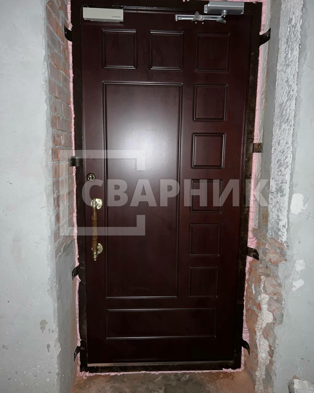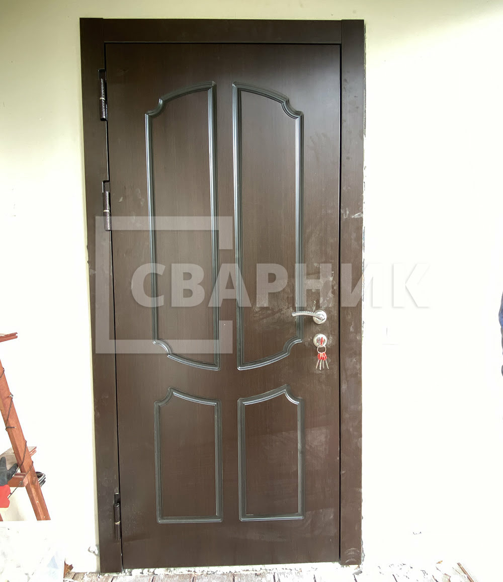 Монтаж конструкций производится по общим правилам с созданием технических зазоров, заполнением их монтажной пеной. Металлическая дверь (полотно) обеспечивает защиту жилья от грубого взлома. Внутренний утеплитель из минеральной плиты сохраняет тепло в доме, уплотнительные резинки – избавляют от сквозняков. «Сварник» – это большой выбор дверей с облицовкой декоративными панелями.